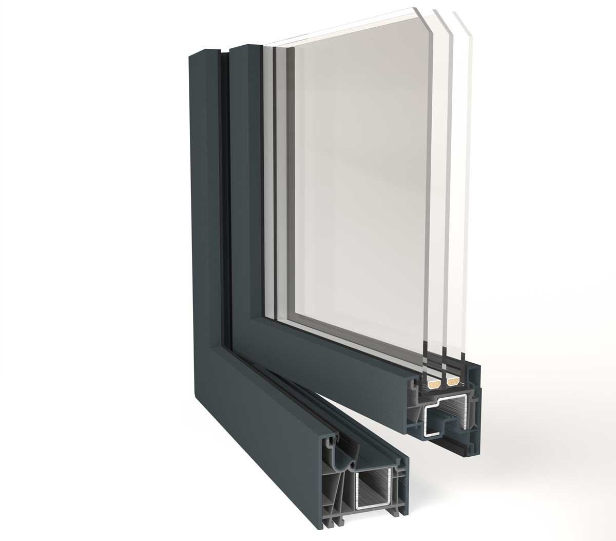 - 3 rétegű üvegezés 48 mm (STV 50 mm) vastagságig, melegperemes kivitelben is